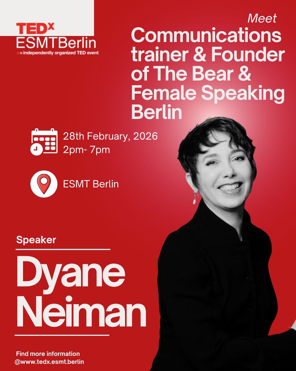 We’re proud to share that Dyane Neiman, co-founder of Female Speaking Berlin, will be taking the TEDx stage as one of the speaker, to share her story!